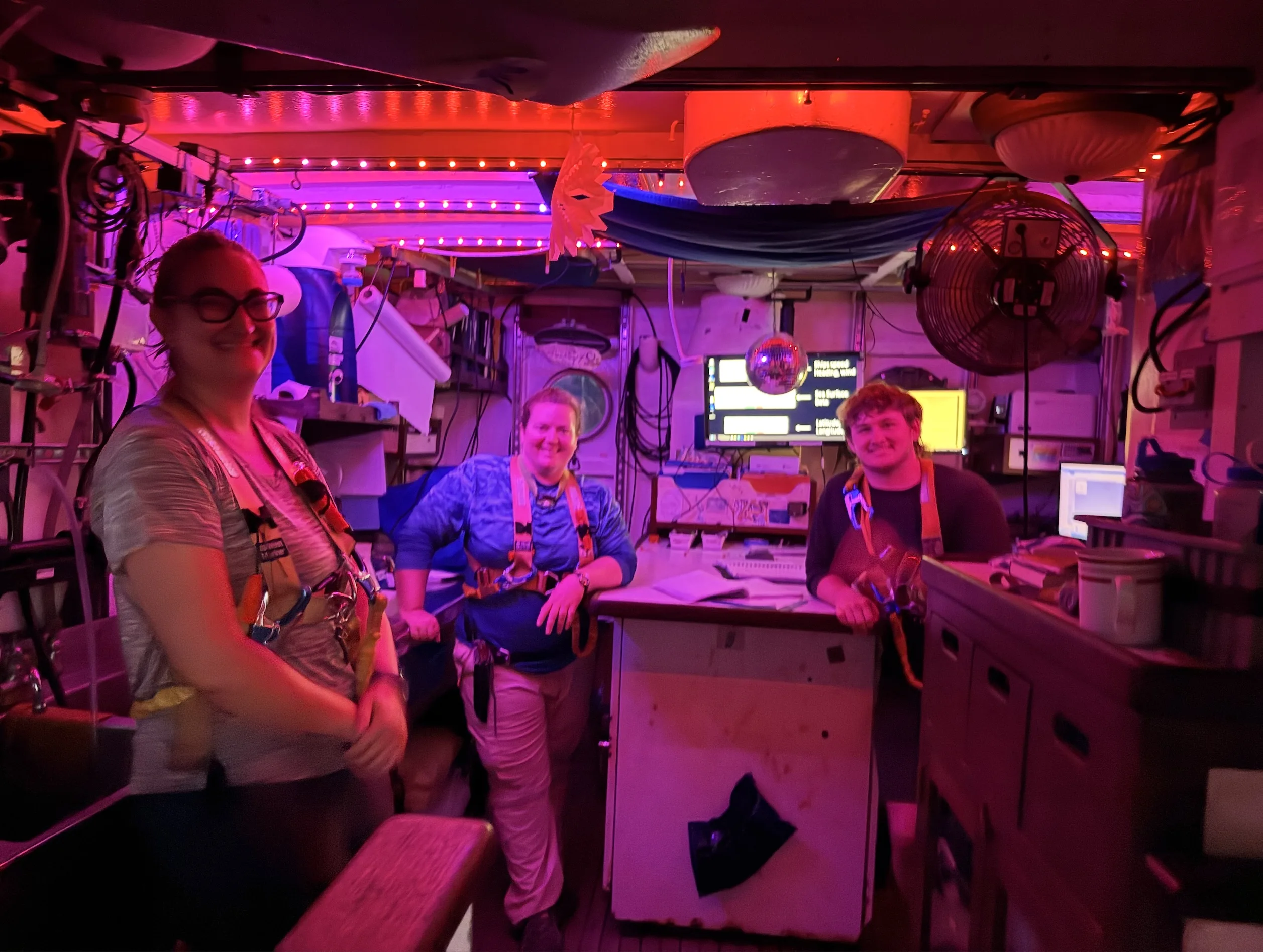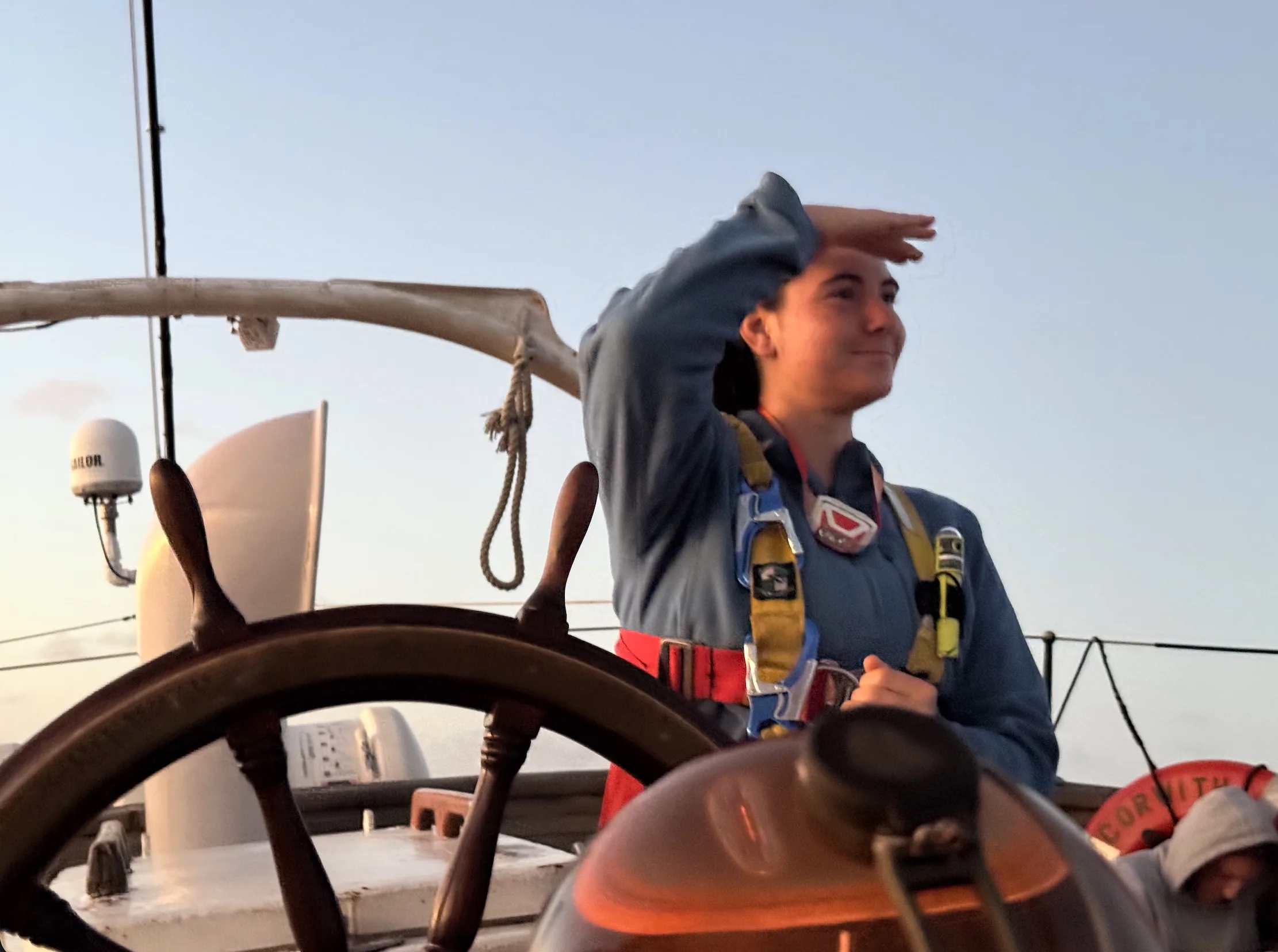 BAZINGA. Anyhow, I’ve discussed enough about love for now. Today we turned around, because we were going to get to Bermuda too fast! The ship continues to run smoothly, and we have turned over to new mates, which will be an exciting experience for all the watches. We ate an exciting snack of cupcakes this afternoon to commemorate the turnover. We tried fishing as well, which did nothing, because the fish are not interested in getting fished, but maybe someday we catch a klutz. The boat environment is incredibly delightful, and there are always people to hang out with and talk to, and getting better sleep has improved not only my own enjoyment of this trip, but clearly positively impacted the people around me. As we settle into this routine, it becomes easier to find time to spend together outside of watch, and to sleep enough to enjoy that time!