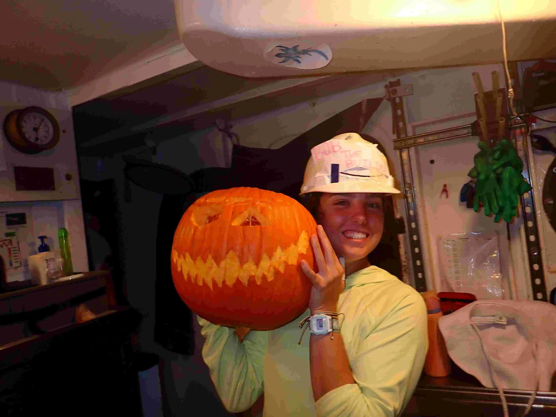 So far, I have been having such a fun time learning new things and experiencing things that I would never have before. While yes, there are times where I would rather be at home eating buffalo chicken dip and a warm brownie instead of digging my hands into a chunky dirty sink of water or when I was seasick and the only thing I could eat were saltines or else I would throw up. But all of the hard and challenging times were so worth it to be where we are today. It is an awesome feeling to be able to be on lookout and the only thing you can see is the deep blue sea or the excitement you get when you go out onto the head rig and lay there talking to your friends, or during the middle of evening watch when you’re on lookout and you look down and see bioluminescent dolphins jumping around the ship’s bow. All these things I would never have gotten to experience without some challenges and rough swells.
