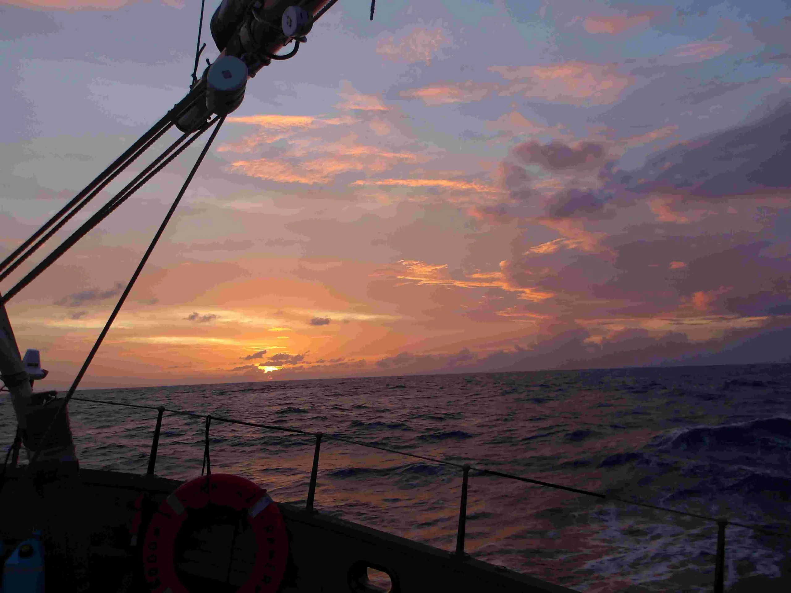 Our past few days underway have been so packed that there seems to be so much going on at every hour! Whether it be chatting while watching the waves rolling and the sun dipping over the horizon, doing dishes in the galley while singing songs from the Sound of Music, dumping slops over the side of the ship, getting majorly poured on by a short passing squall, riding out waves on the head rig, being woken up by waves slamming against the hull in the focsle, or just laughing out of sheer tiredness, I have had so much fun so far and hope there are much more memories to be made.