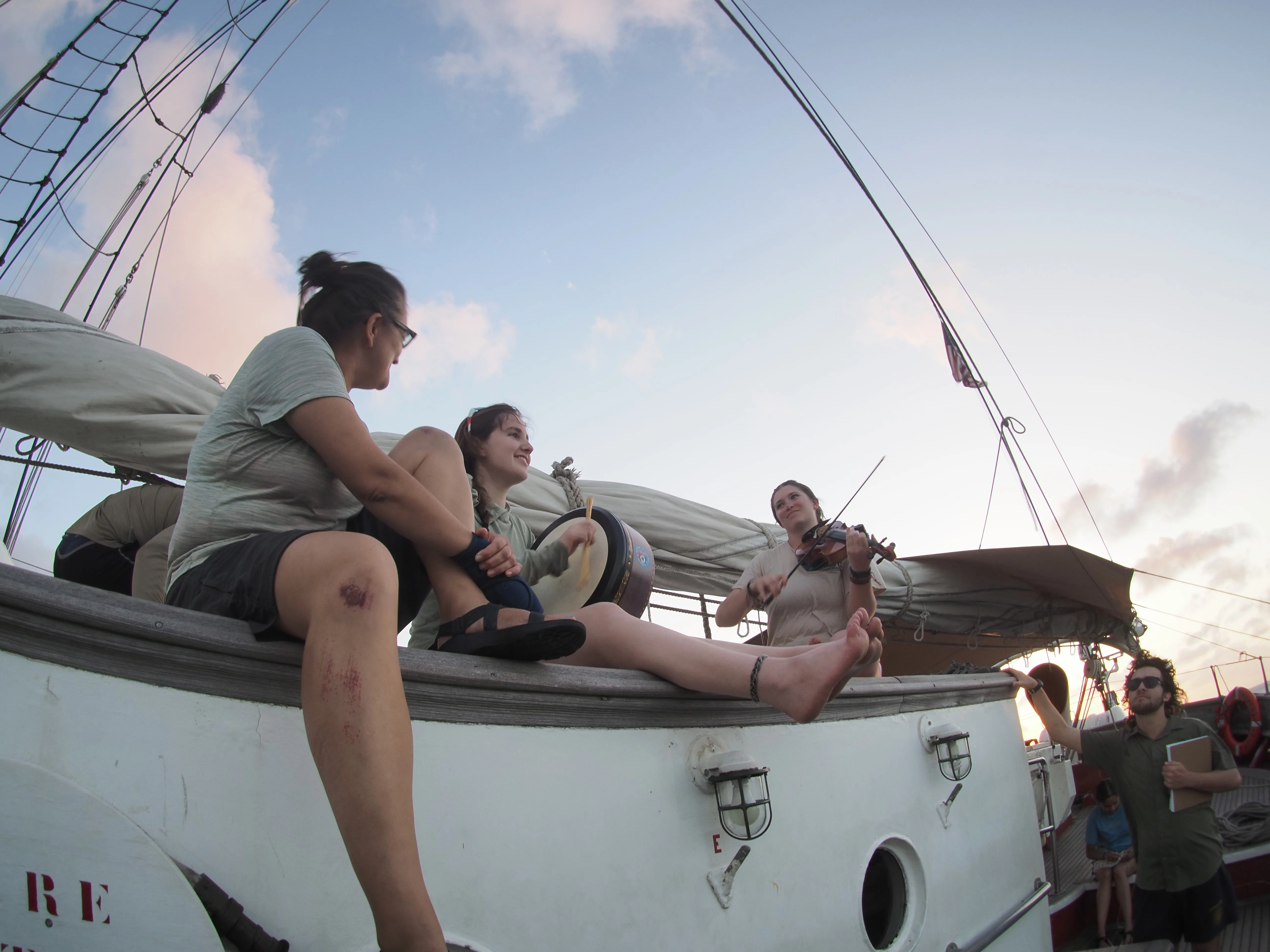 People often think of ceremonies in the context of religion, but it can be something else entirely. This line of thinking is made possible by inventing my own definition for the word, as I was unable to find a dictionary on board. I tend to think of ceremonies in the broader sense as being “time that is intentionally structured to bring about a certain way of thinking or being.” When you think of it this way, you see ceremonies all around you. So much of life is unstructured and chaotic, so people create small ceremonies out of the way they eat dinner, the way they play music, or the way they interact with social groups. Here on the ship, nearly every minute of your day is structured, and meant to bring about a certain headspace. Our afternoon meeting brings us all together to learn, regardless of whether you are on watch or would much rather be sleeping. Our watch schedule turns weeks into 3-day segments, and you begin to view your down time as opportunities for sleep, laundry, or showering. Sunset becomes a sort of social hour, with guitar and ukulele abounding. Watch meetings every third day are set up as intentional discussions between officers and students so that we can all be on the same page regarding our learning and emotional states. For 30 minutes after sunset a bunch of frenzied hooligans run around deck armed with sextants yelling at someone named Mark. Sometimes we have a teatime at 0300 set aside for deep thought and connection. Everywhere you look, you see ceremony in action.