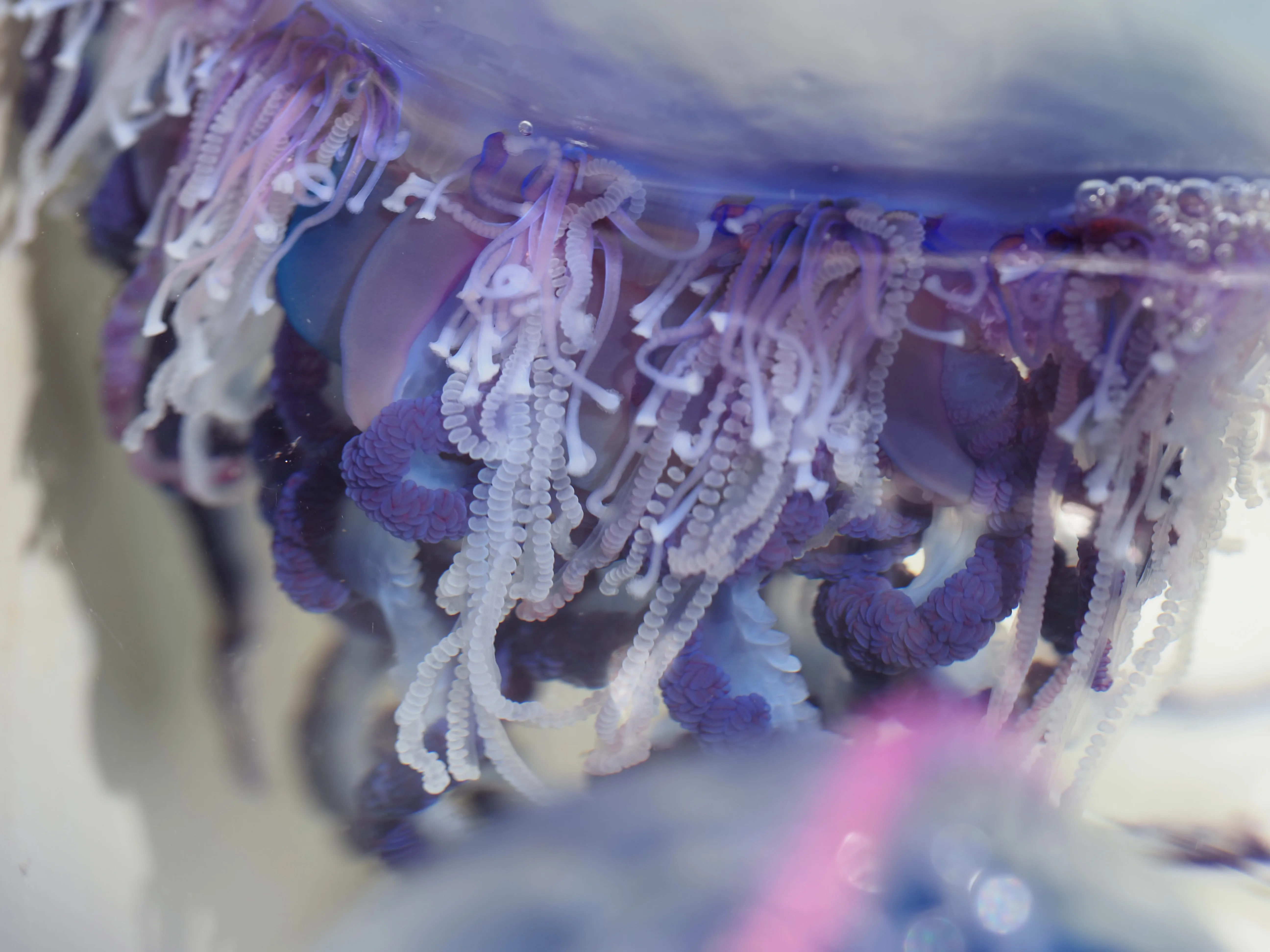 The time I have spent working with this organization has always seemed to exist in some kind of weird flux, from joining programs last minute to battlefield promotions I find myself drifting in a way not too dissimilar to our latest creature of interest, the Physalia (better known to many as Portuguese man o’ wars), hoping to be caught by the dip net of employment. Although they find themselves at the mercy of the wind and waves, when confined to a bucket it becomes clear how much control they have of their own movement. By flexing different parts of their gas bladder, they can contort this way and that, almost climbing their way out of the bucket and righting themselves when capsized. I feel somehow connected to these strange blobs of colonial siphonophores. In the Big World on shore I often find myself feeling swept along by the powerful current of life and society at large. It becomes too much to handle, and even while doomscrolling I find ways to stress myself out about the state of the world and the state of my life and speaking of my life what am I supposed to do with that thing for the next 60 odd years and I really should be looking at job applications and licensing and wait a minute I should have FUN in my 20s but my friends are all too far away to do anything with and…you get the picture. Being at sea feels like being put in that little bucket in the lab sink. The conditions are simpler. I can think. I can breathe. I can right myself. I can finally feel like I’m doing something, like the little contortions of that gas float can make a difference.