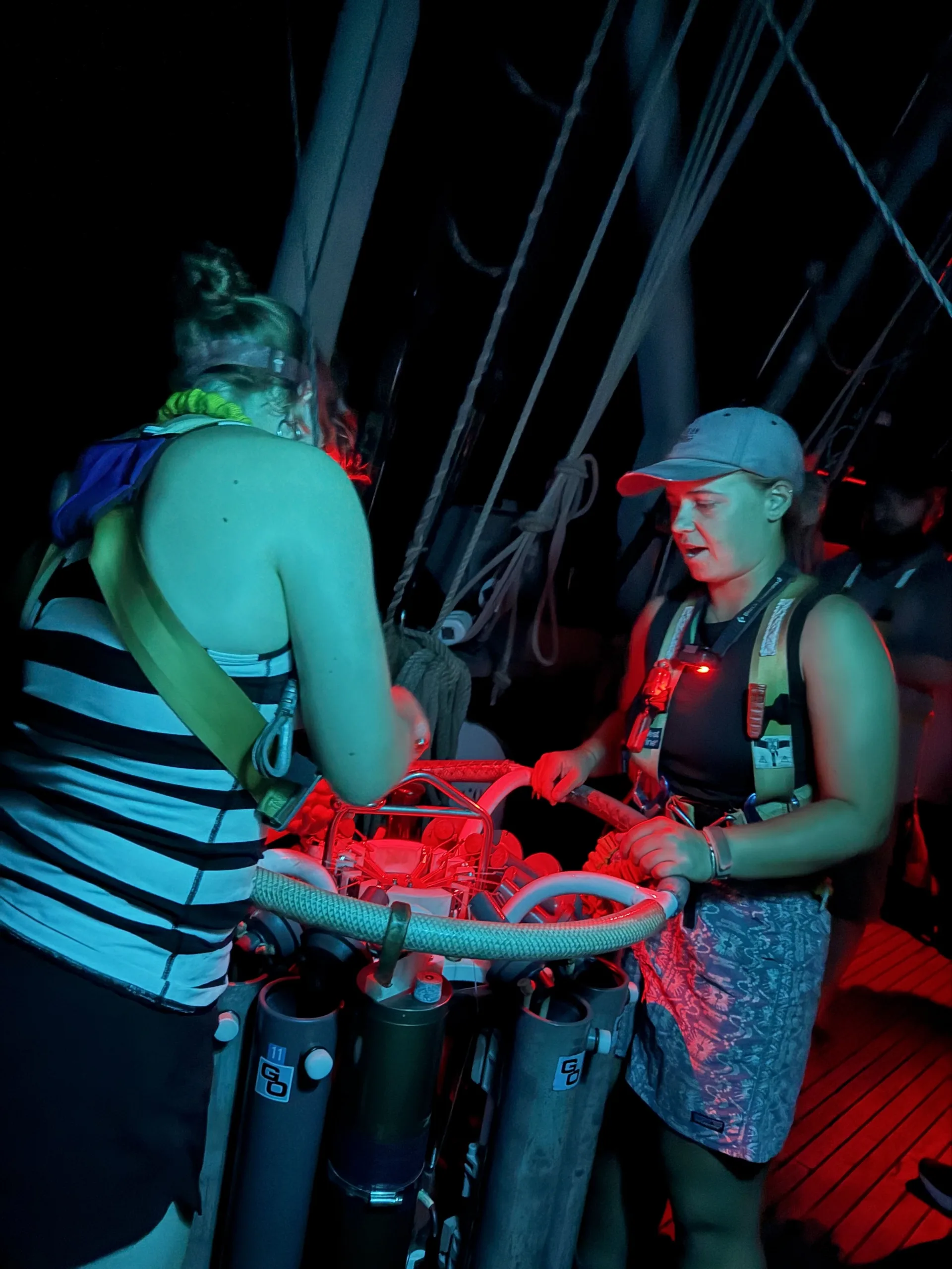Hello friends and family members! It’s Simon writing for you today, which is why you are captivated and engaged with my incredibly succinct, rich, and well thought out writing! I am writing this at 19:28, having finished my afternoon watch, which means, to those closely watching at home, that I was previously on evening watch yesterday! During that watch, we deployed a lovely CTD into the water. CTD’s allow us to capture important information, including conductivity, temperature, and depth. Anyhow, our CTD reached a depth of 600 meters, which, if you didn’t know, is quite deep. I can hold my breath for a long time, but even I would be challenged by the depths of the CTD. Honestly, I would probably succeed quite easily, but I don’t want to make you feel bad. The CTD is also attached to a rig that collects water samples at different depths, which we can analyze for chlorophyll and pH. Overall, it’s a pretty good gig, and worth doing at home if you have the time.
