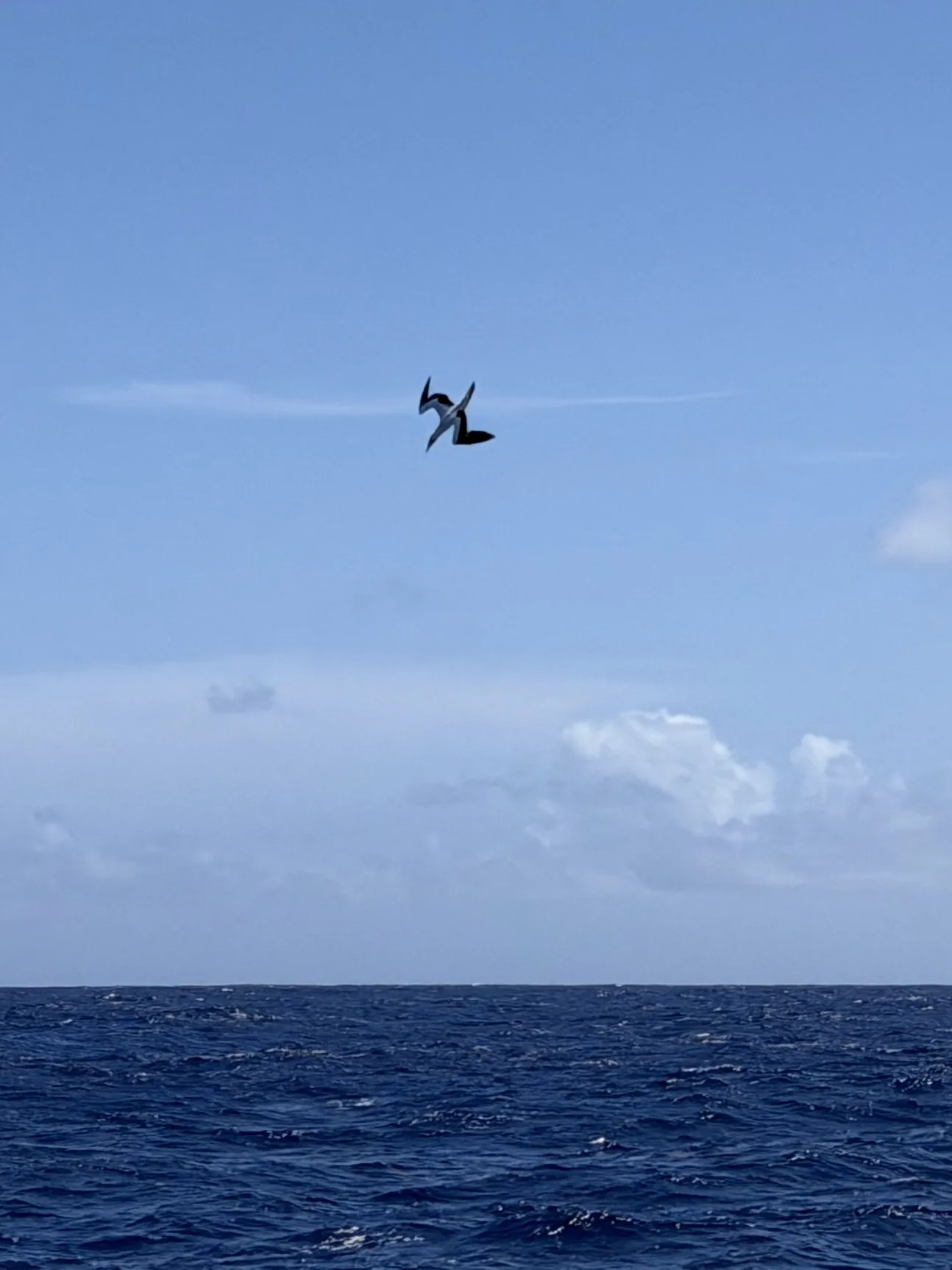 A little birdy came by to visit us, and sort of circled the boat for several hours. I’m pretty sure he is still up there as I am writing this, and honestly, it feels quite unfair, because birds are supposed to fly, not sit on our boat and look at the weather. At least he had the decency to catch something, which was rather impressive, but I could likely have done the same thing using only a deep ocean trawling line and a couple of hours. The bird species is a red tailed trailhawler, which is a bird that specializes in hunting surface dwelling fish, such as flying fish, and salty trout (Like trout but for the ocean). These birds are particularly impressive, because they grow up on Bermuda, and once they leave their nest, they never stop flying, until they mate.