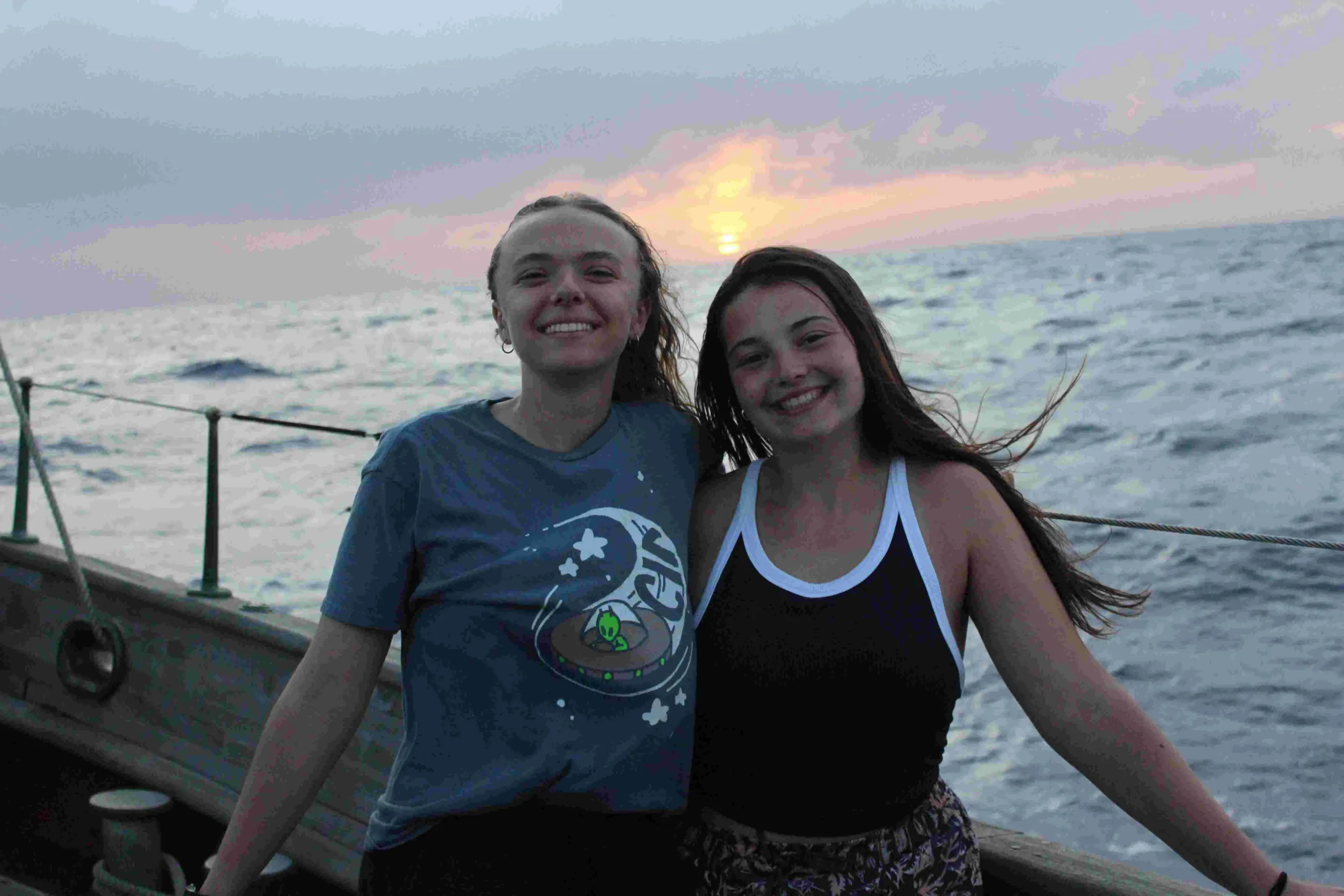 Riley: Giving hugs to Mommy, Mama, Grandpa, Caden, and Sabrina, I miss you! Sending love to everyone at Oberlin and beyond. The sea sickness hasn’t taken me out yet 🙂