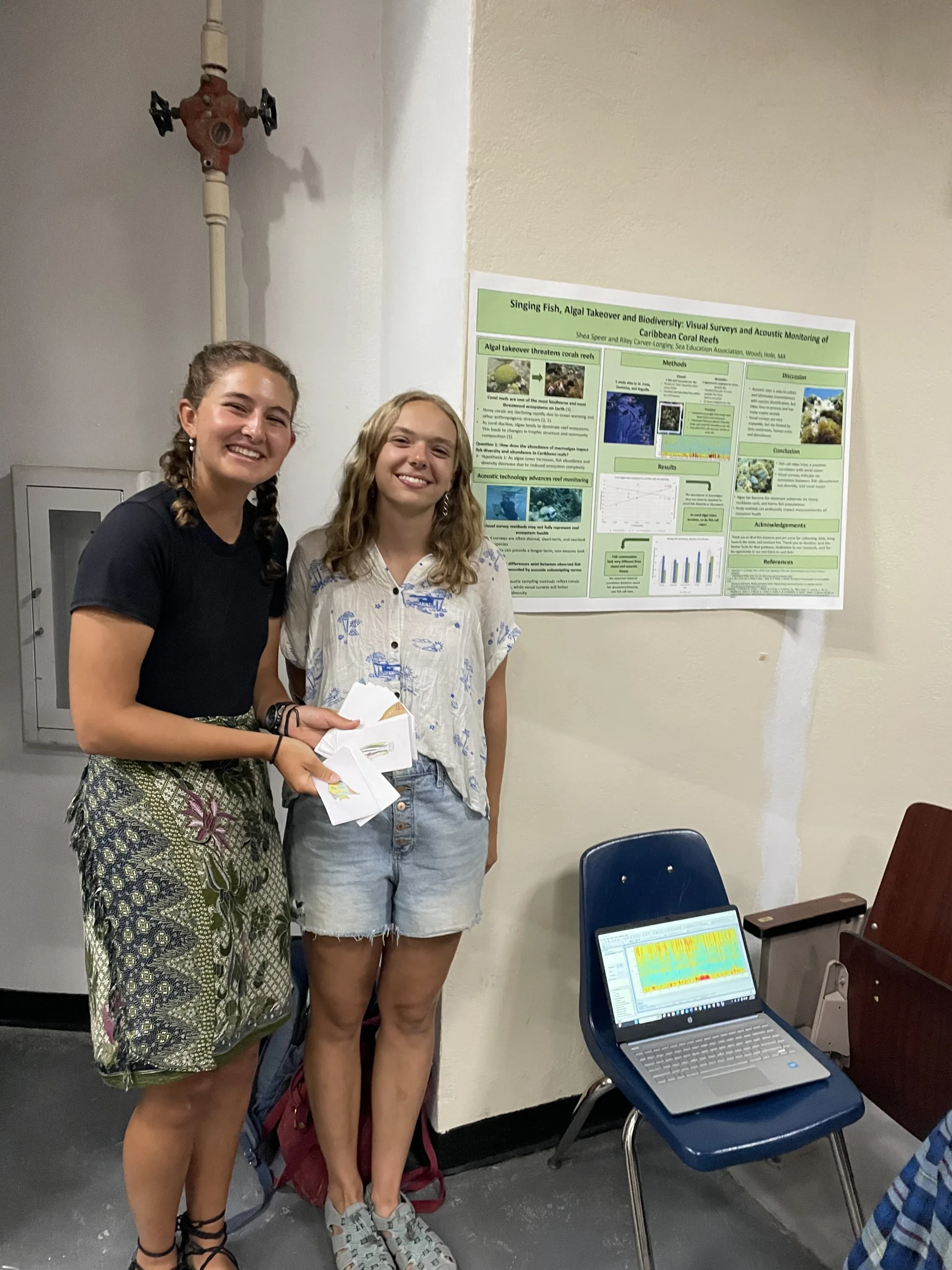 Three years ago, with all the ambition and none of the planning that often afflicts young graduate students, I carried a single acoustic recorder (hydromoth) in my hand luggage to join SEA’s ship in Hawaii. Yesterday, I got to watch proudly as our students presented their research on fish acoustics and reef soundscapes in the Caribbean to the community in St. Croix.